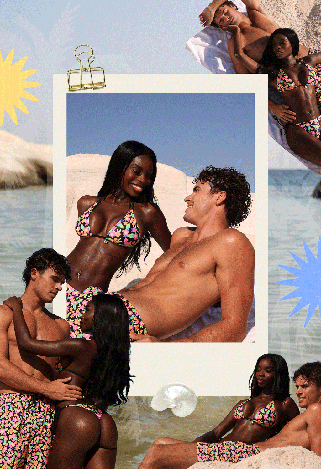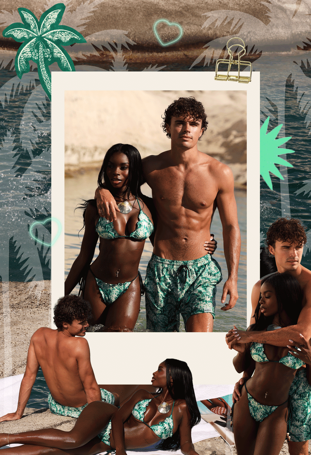 From chic halter tops to cheeky bottoms and versatile one-pieces, our swimwear is crafted to flatter every body type. Men's swim trunks come in matching prints with women’s swimwear, perfect for that matching couple's outfit. Don't forget to check out our accessories and apparel to complete your look.