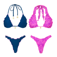 It's recommended to hand wash in cold water after use. If using a machine, opt for a cold gentle cycle and only with a delicates bag. Do not soak or bleach. Line dry or lay flat in a shady area, as some colors may fade in direct sunlight. Remove excess water promptly and avoid packing while wet, as some colors may bleed or transfer. Do not dry clean, iron, or tumble dry, even on a gentle cycle, as these can damage, distort, or discolor your swimwear.
